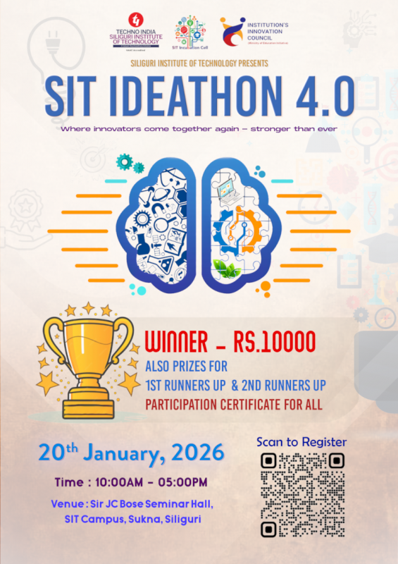 Siliguri Institute of Technology will be coming with the 3rd version of its annual idea festival called IDEATHON 4.0 on 20th February, 2026 at SIT campus, Sukna, Salbari.