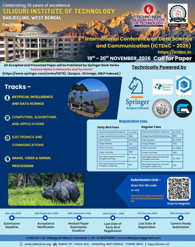 We are back with the 3rd Edition of the International Conference ICTDsC 2026, featuring Scopus (SCImago) indexed publication opportunities.